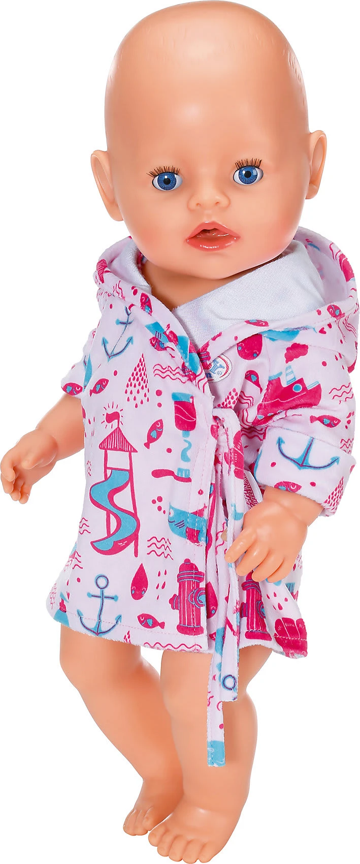Auch BABY born verbringt gerne einmal einen entspannten Sonntag vor dem Fernseher. Da zum richtigen Faullenzen auch das passende Outfit gehört, ist dieser Bademantel unabdingbar. Der weiche Stoff und das bunte Muster laden dazu ein, sich auf die Couch zurückzuziehen und alle viere gerade sein zu lassen.