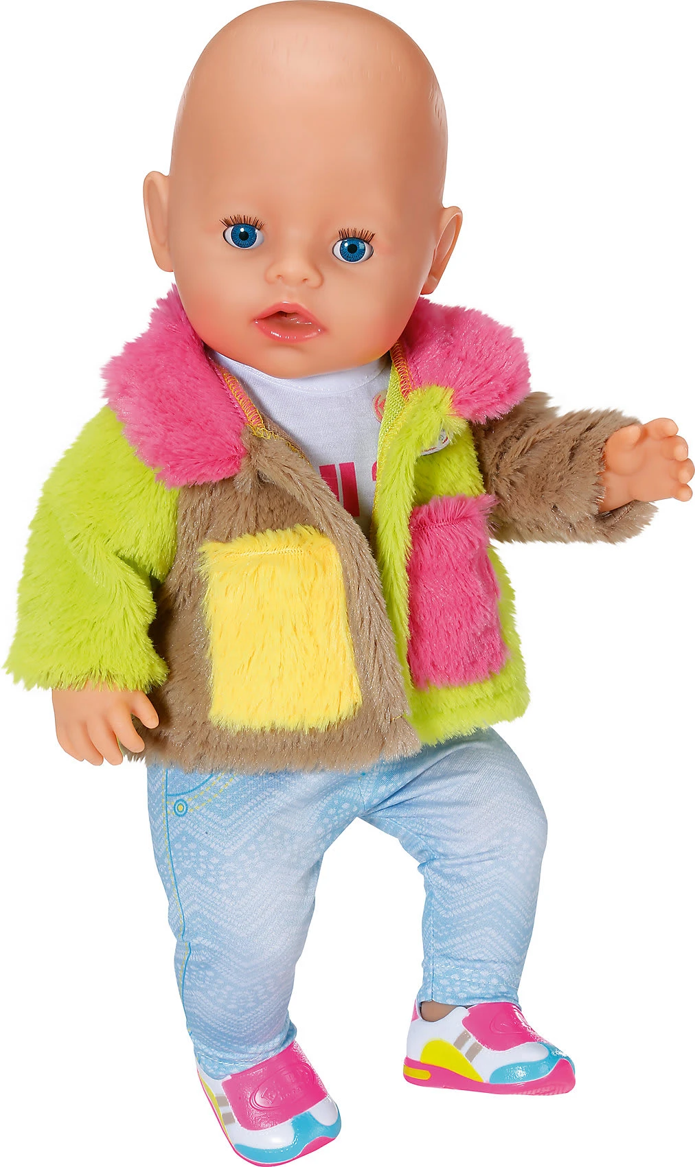 Für einen ganz besonders coolen Auftritt: Dieser bezaubernde BABY born® „Deluxe Regenbogen Mantel“ von Zapf Creation wird alle Puppenelter begeistern. Mit zu dem lässigen Outfit gehören noch ein T-Shirt, eine Hose und coole Schuhe. Ein tolles Outfit für einen Tag im Freien!