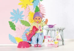 Dieses bezaubernde BABY born® „Magic All Season Girl“ von Zapf Creation ist mit ihrem kompletten Outfit wirklich für alle Jahreszeiten gewappnet. Sie hat sogar ein Jäckchen für die kühlen Tage dabei. Durch Drehen des Schnullers öffnet und schließt BABY born® die Schlafaugen – egal in welcher Position sich ihr Körper befindet. Begeistern kann die neue Lieblingspuppe mit den vielen lebensechten Funktionen, die für ein authentisches Spielvergnügen sorgen. Sie trinkt gerne Wasser aus ihrem Fläschchen und kann dann Pipi in die Windel oder ins Töpfchen machen und echte Puppentränen weinen. Neben Wasser steht bei BABY born® auch leckerer Brei auf dem Speiseplan. Dann macht sie sogar ihr großes Geschäft! Ihre Arme, Beine und der Kopf sind super beweglich, so dass das An- und Ausziehen hübscher Kleidung zum Kinderspiel wird.