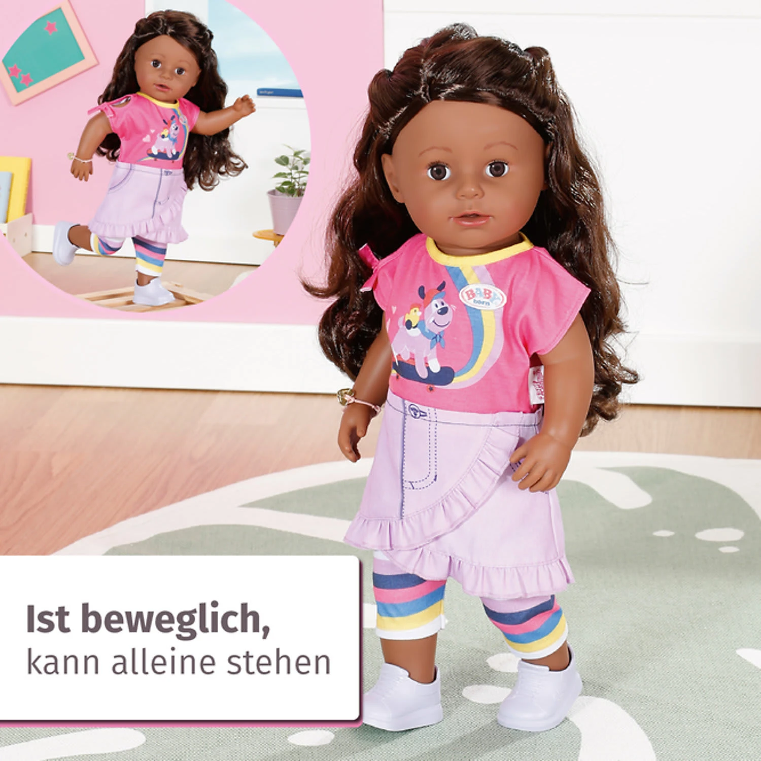 Die Sister Puppe ist die große Schwester von BABY born®, die schon selbstständig sitzen und stehen kann. Sie hat wunderschöne lange Haare, die mit dem enthaltetenen Zubehör gekämmt und immer wieder neu frisiert werden können. Sie trinkt aus dem Fläschen und kann, wenn sie getrunken hat, sogar Tränen vergießen. Hat sie sich beim Spielen schmutzig gemacht, kann sie ein Bad nehmen. Sie ist sehr beweglich und somit eine besonders tolle Spielgefährtin!