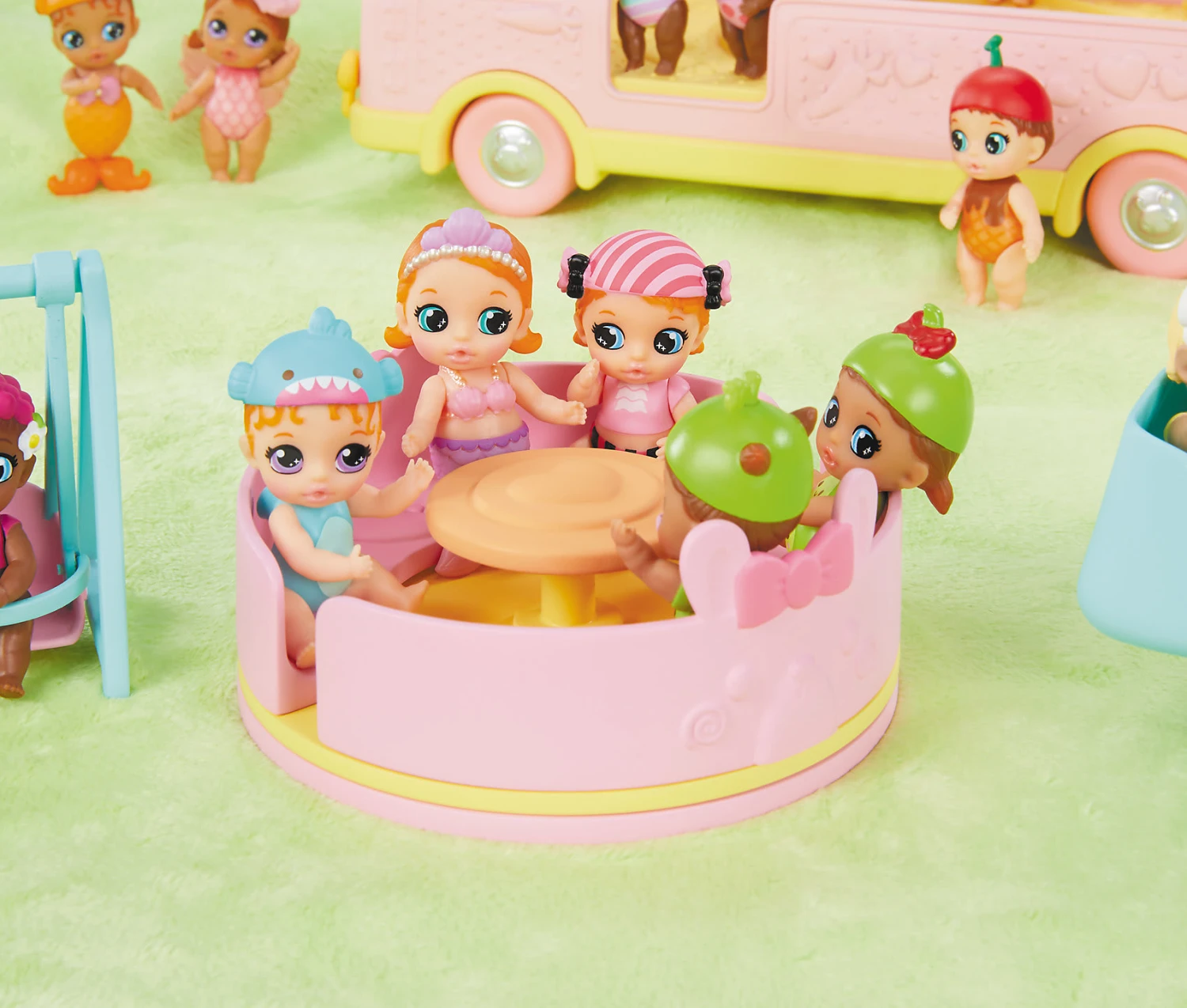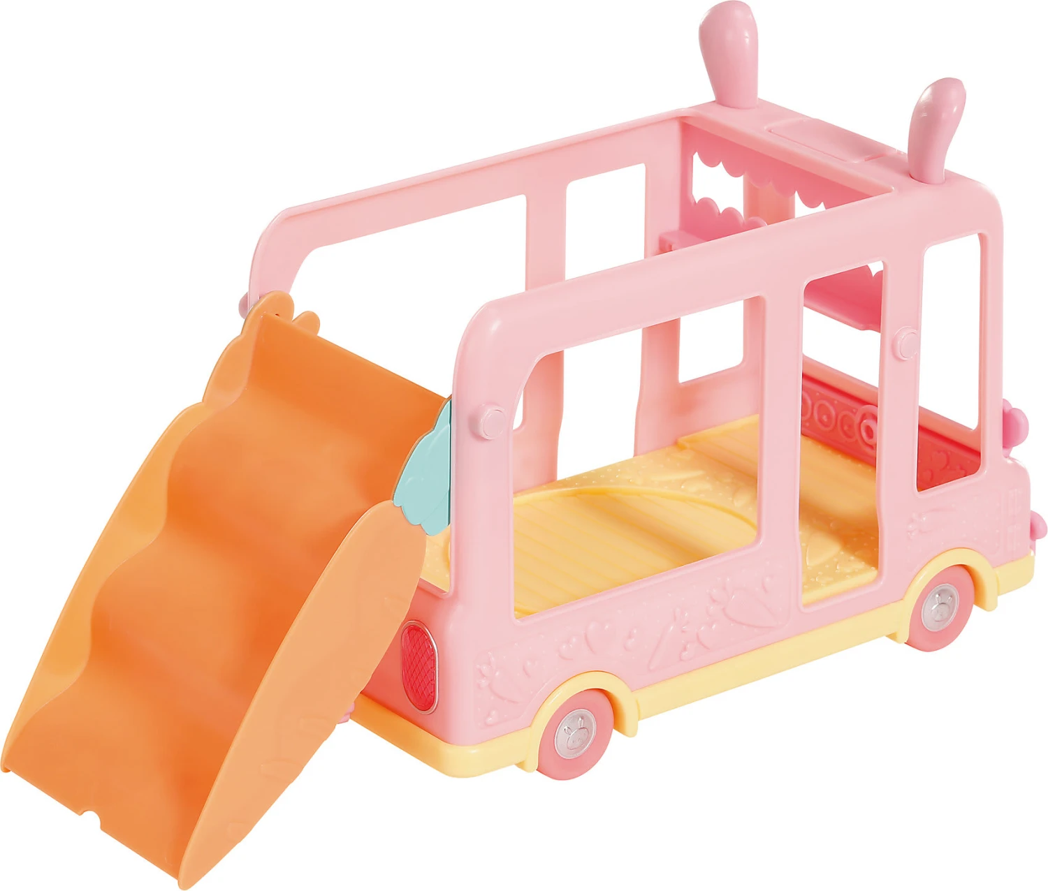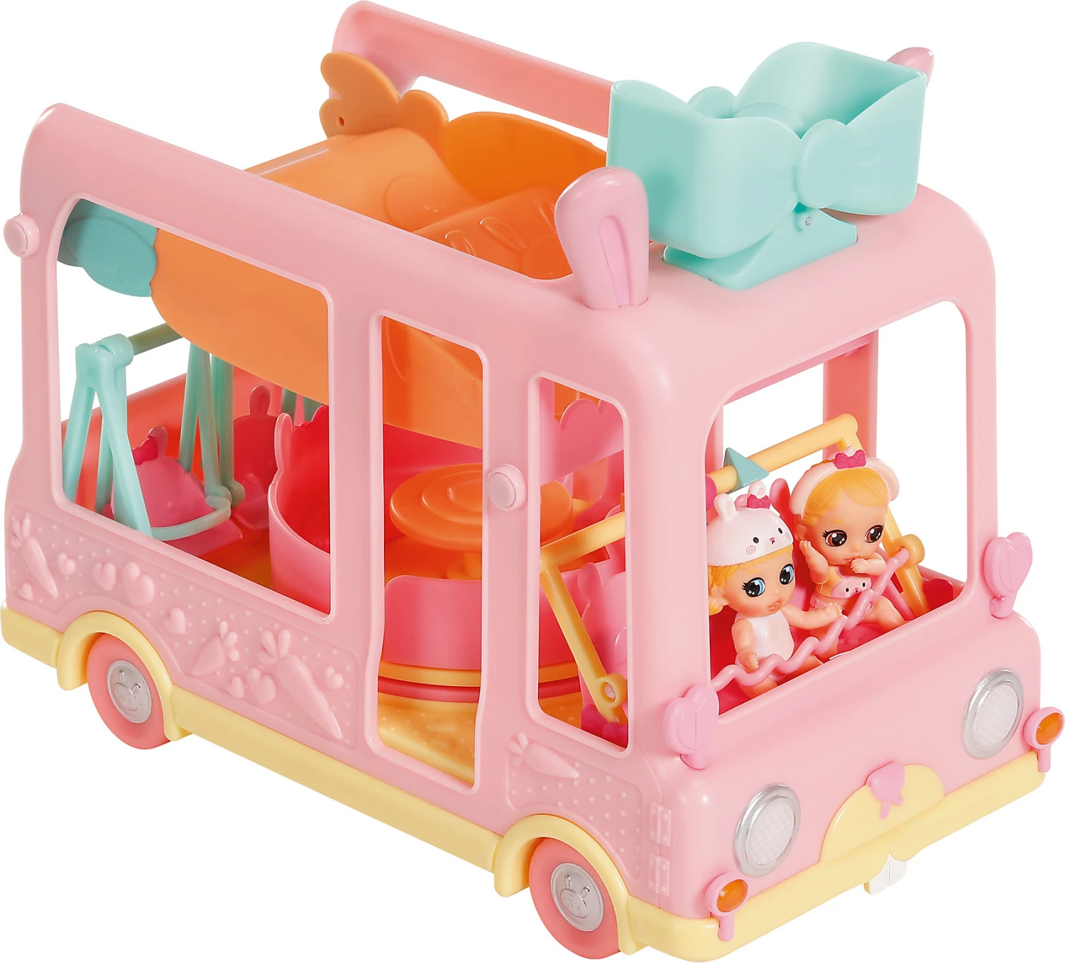Bei so viel Nachwuchs hat der Storch den Busführerschein machen müssen. Nun darf er ganz viele Mini Babies befördern. Im pinken Bus haben über 20 von ihnen Platz. Das Gefährt kommt serienmäßig im Hasen-Exterieur. Die Stoßstangen sind mit putziger Nase und blumigem Stummelschwänzchen verziert. Auf dem Dach befinden sich witzige Langohren. Und die oberen Sitzreihen sind in eine Karotte eingebettet. Die unteren Sitze lassen sich zu 3er-Schaukel, Karussel und Drillings-Buggy umbauen. Da wird auch die Pause zur echten Abenteuertour. Und wenn auf der Autobahn die Karottensitze zur Rutsche werden und die Schleife zwischen den Hasenohren zur Wippe, dann haben auch die anderen Leute im Stau ihren Spaß. Ein exklusives Zwillingspärchen in einer orange-grünen Wickeldecke in Möhrenform gehört ebenfalls zur Serienausstattung. • BABY born Surprise Zubehör. • Zum Spielen und Sammeln. • Das abwechslungsreiche (Rollen-)Spiel mit BABY born Surprise fördert die Fantasie und unterstützt nachweislich die Entwicklung sozialer Fähigkeiten und Werte wie Verantwortung, Kommunikation und Einfühlungsvermögen. BABY born Surprise Mini Babies Bus. Inkl. exklusivem BABY born Surprise Mini Babies Zwillingspärchen. Alle anderen BABY born Surprise Mini Babies sind sepparat erhältlich und nicht im Lieferumfang enthalten.