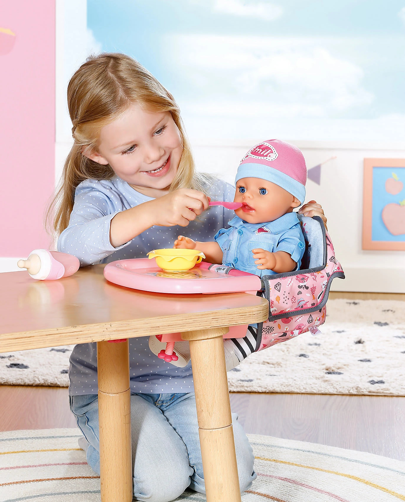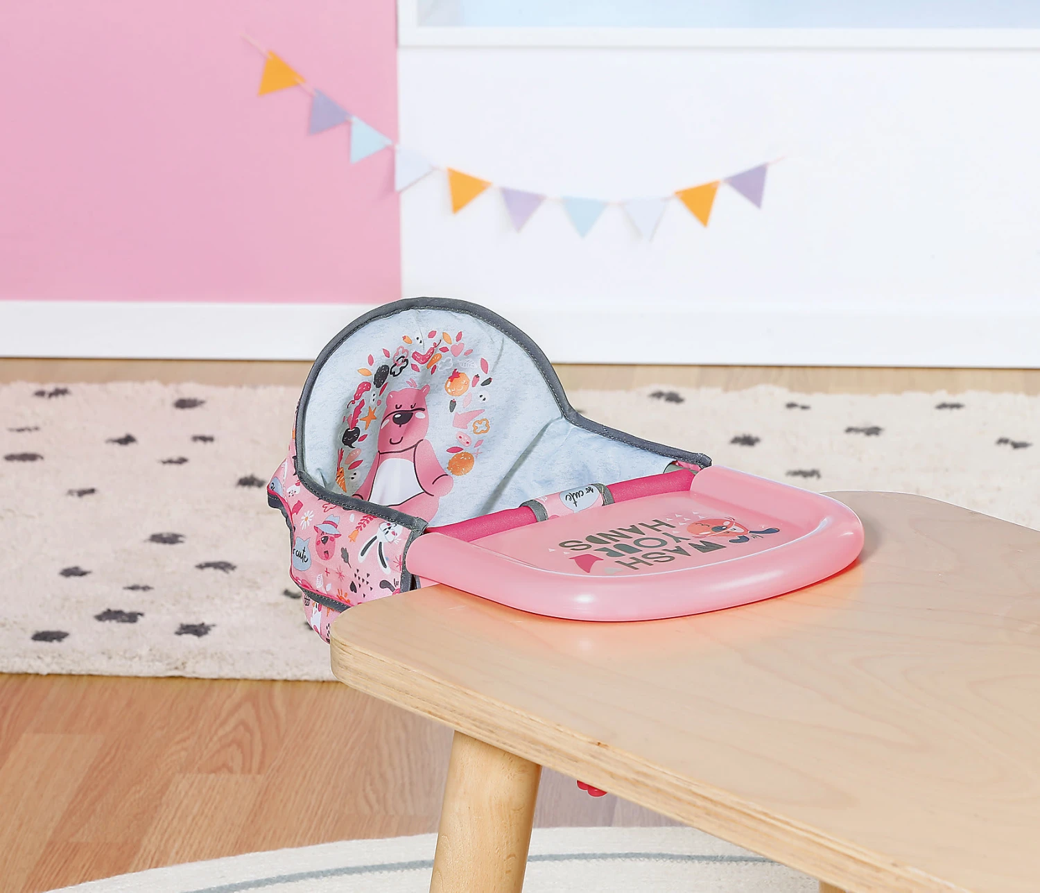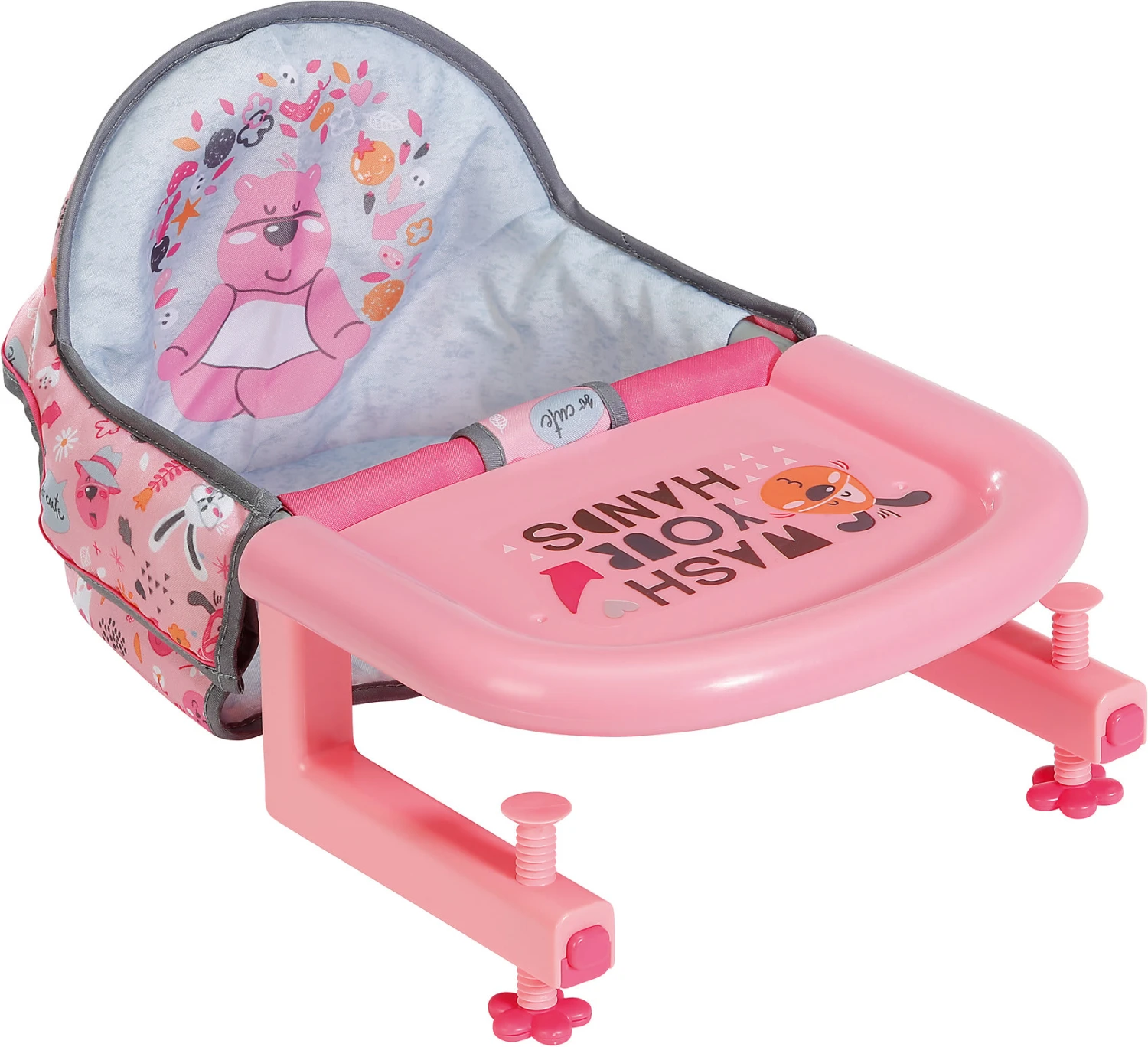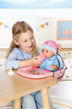 Mit diesem tollen „BABY born“ Tischsitz von Zapf Creation kann die Lieblingspuppe mit am Tisch sitzen! Einfach den Sitz mit Tablett an der Tischplatte festschrauben und schon kann der Spaß beginnen! Einfach die Puppe hineinsetzen und schon kann sie gefüttert werden und vieles mehr.