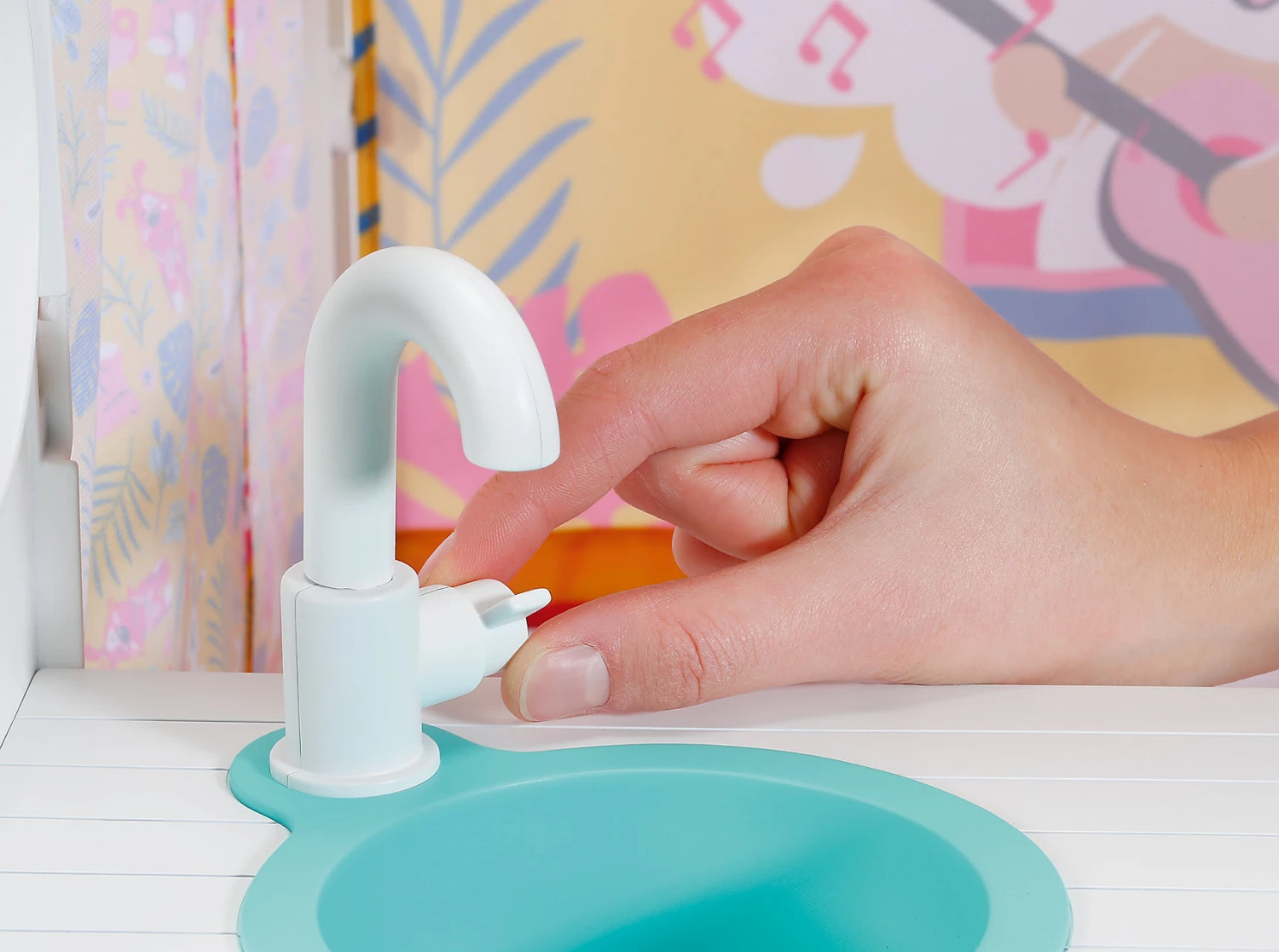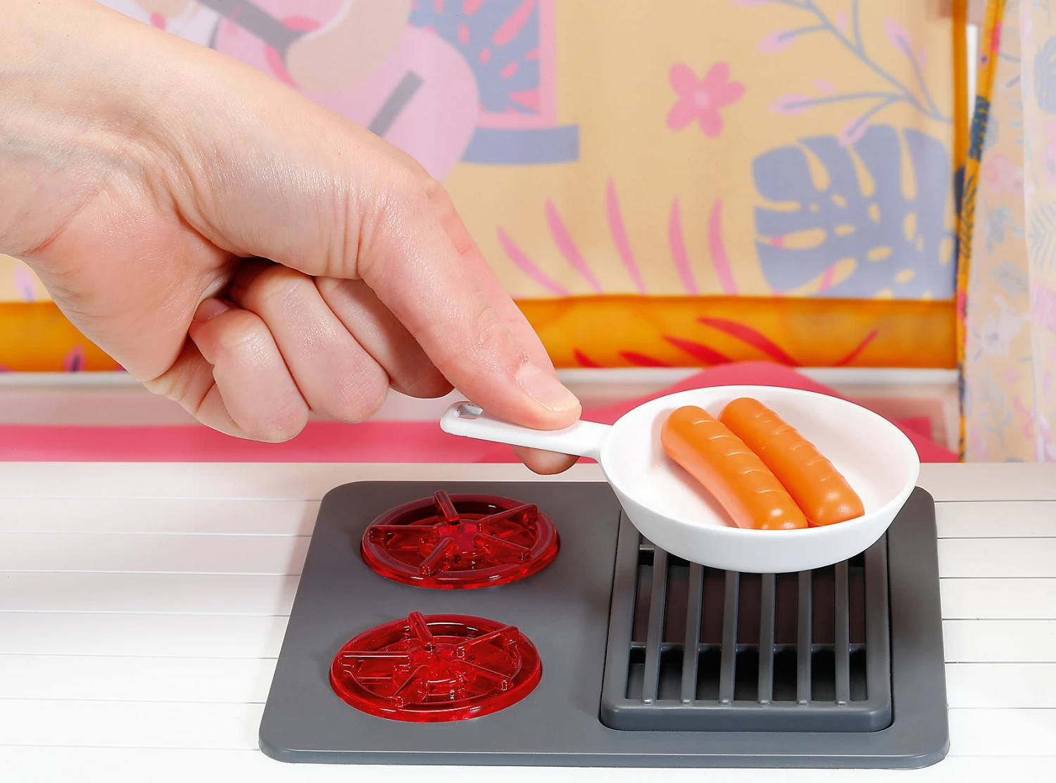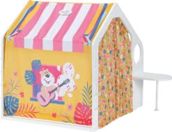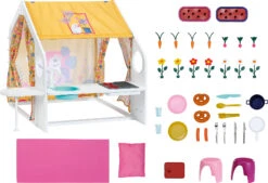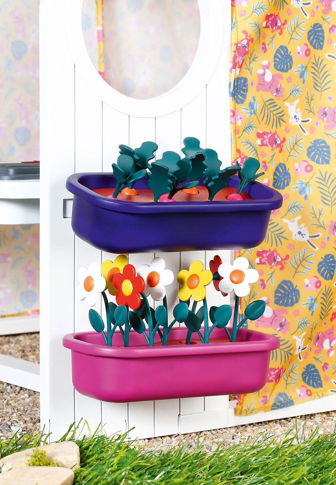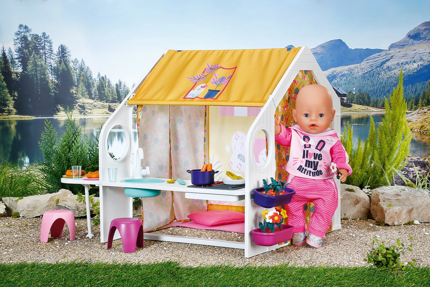 Auf geht es zum Wochenendhaus! Auch die kleinen Puppenkinder haben am Wochenende ein tolles Ausflugsziel: Mit dem umfassenden Spieleset BABY born® Weekend Haus von Zapf Creation können es sich die Puppenkinder richtig gut gehen lassen. Angekommen, werden erst einmal die Seitenteile geöffnet – jetzt ist viel Platz um die kleinen Blumenkästen mit Blümchen zu „bepflanzen“ und am Haus außen zu befestigen. Während das Essen auf den Herd brutzelt, deckt das Puppenkind den Tisch. Neben Karotten-Radieschen-Salat gibt es Würstchen und Brezeln. Auf den Hockern können die Puppenkinder sitzen, während sie ihre Brezeln und Karotten vespern und wenn die Schlafenszeit kommt, oder ein Mittagschläfchen guttut, sorgt die Bettdecke mit dem passenden Kopfkissen für ein kuscheliges Wohlgefühl. Mit dem Wochenendhaus-Spieleset haben alle kleinen Puppeneltern und Puppenkinder ein wundervolles „Ausflugsziel“ zum Nachspielen der Alltagsabenteuer und zum Erfinden ganz eigener Geschichten.