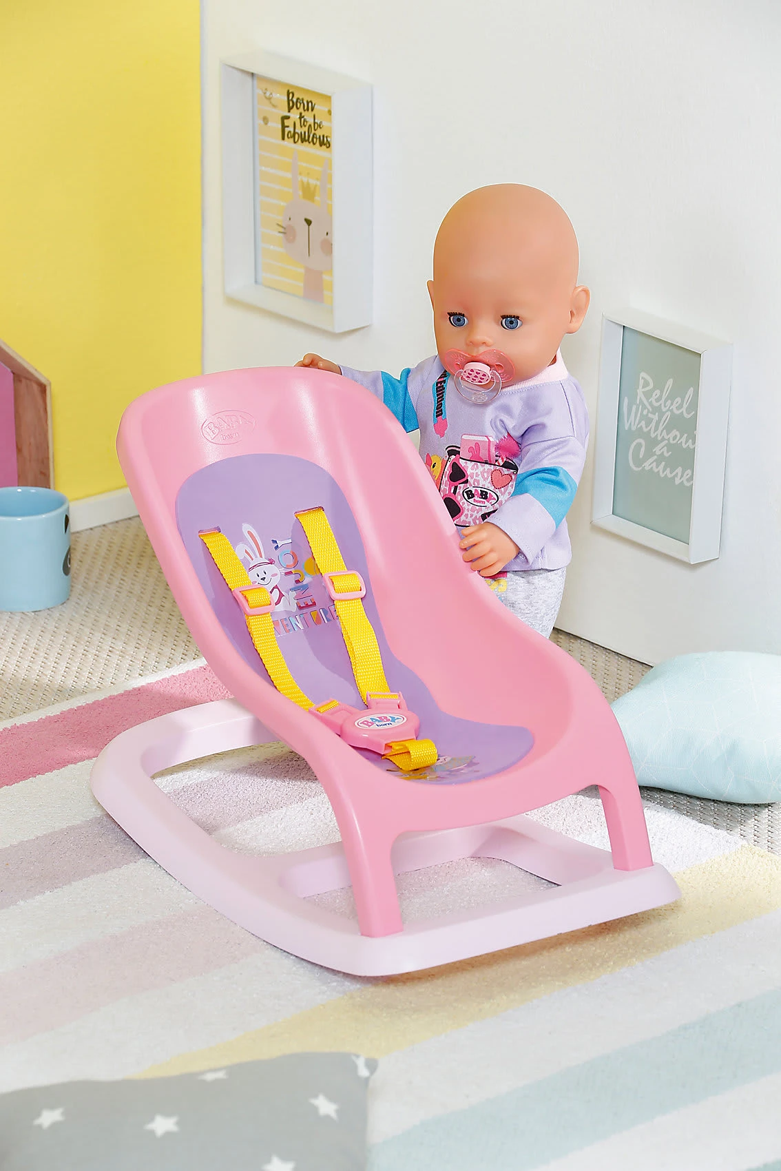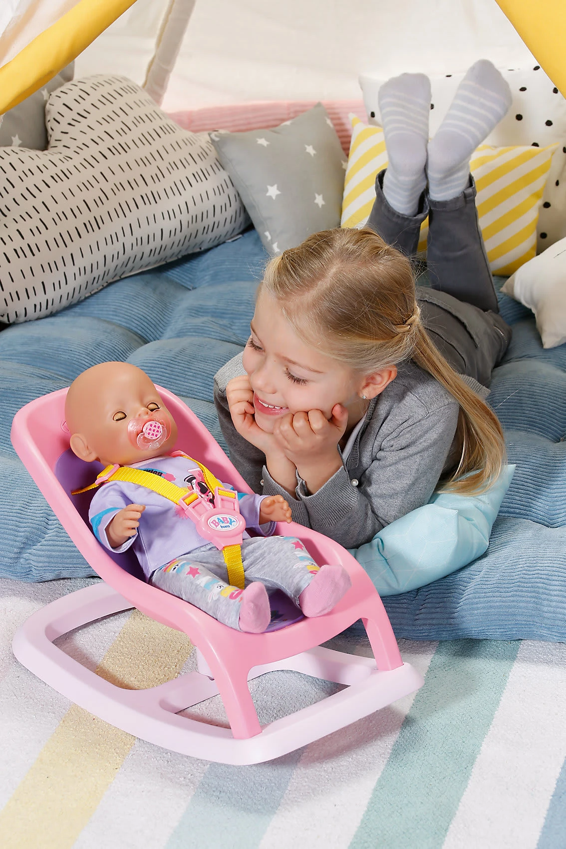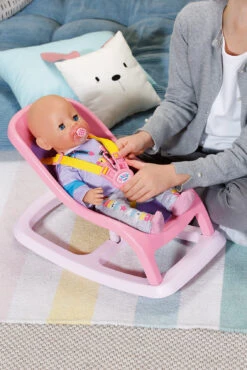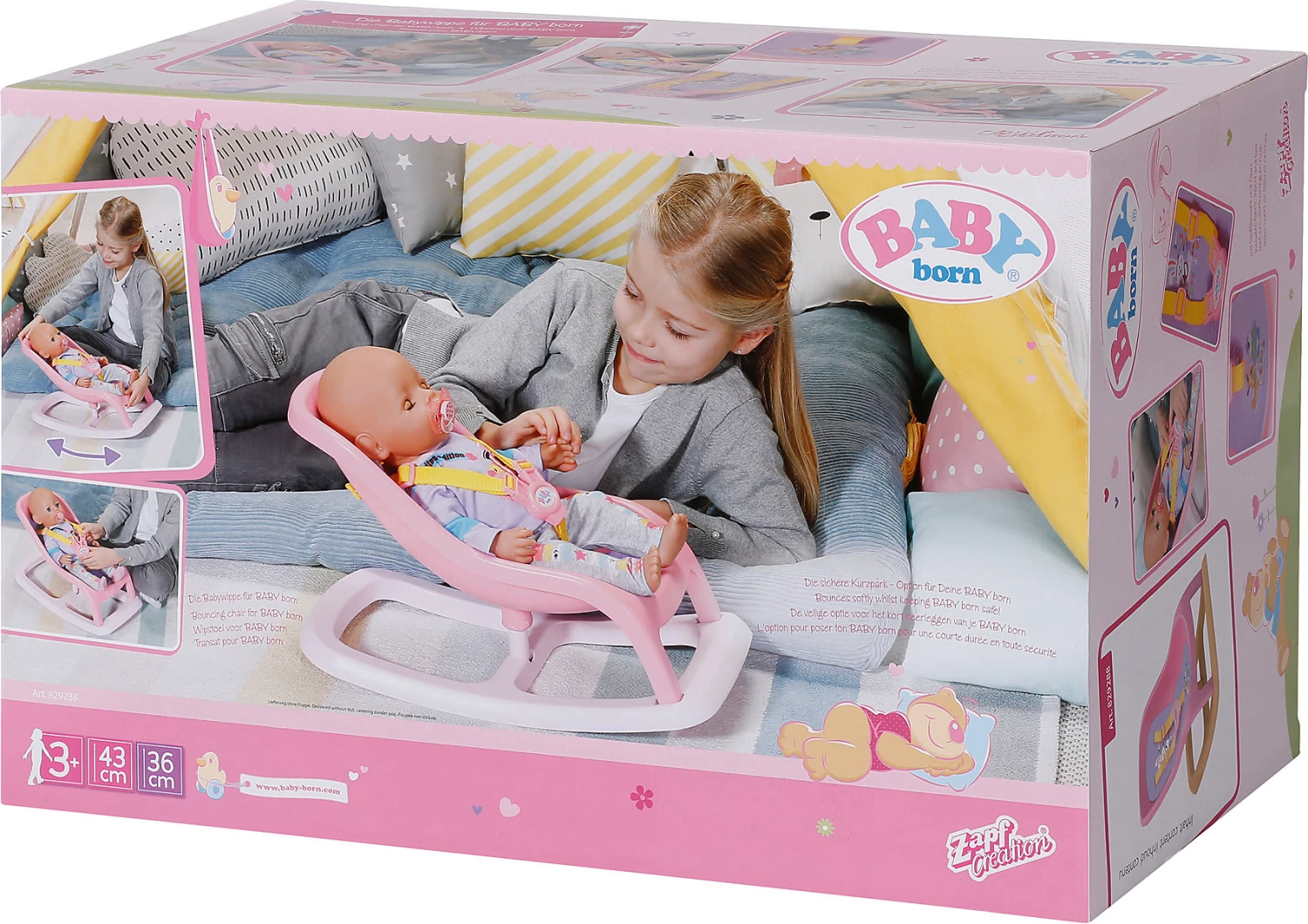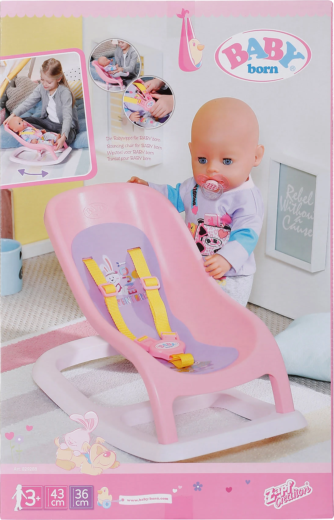 BABY born sitzt gerne in ihrer Wippe und beobachtet gespannt, was um sie herum so passiert. BABY born Wippe von Zapf hochwertiges Zubehör für die BABY born Markenspielpuppe auch für kleinere Puppen geeignet (36cm bis 43cm) ab 3 Jahren Wenn du die Wippe kurz anstupst, beginnt sie zu schwingen und beruhigt BABY born, wenn sie mal schlechte Laune hat. Das Gurtsystem hält die kleine Entdeckerin sicher auf der weichen Stoffeinlage, damit sie beim Schaukeln nicht herausfällt. Diese Wippe ist eine sichere Kurzpark-Option für deine BABY born.