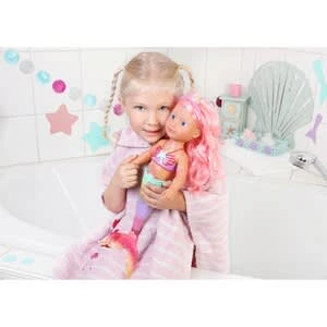 Wenn man an Meer denkt, hat man sofort die Farbe blau im Kopf. Stimmt, das Wasser ist blau, aber in den Wellen geht es ganz schön bunt zu. Die kleine BABY born Meerjungfrau ist das beste Beispiel für die farbenfrohen Unterwasserwesen. Puppe BABY born Little Sister Meerjungfrau 46 cm von Zapf Creation inklusive Kamm und Diadem bewegt sich im Wasser aus Kunststoff ab 3 Jahren geeignet Ihr Fischschwanz ist ganz bunt und mit Glitzerelementen verziert. Er bewegt sich, wenn er in Kontakt mit Wasser kommt. Das Oberteil im Muscheldesign und die bunte Körperbemalung passt farblich hervorragend zum Meerjungfrauenschwanz. In ihren langen pinken Haaren trägt die Meerjungfrau ein lila Diadem. Die Haare lassen sich mit dem Kamm immer wieder zu neuen Frisuren stylen. Interessant: Das abwechslungsreiche (Rollen-)Spiel mit BABY born fördert die Fantasie und unterstützt nachweislich die Entwicklung sozialer Fähigkeiten und Werte wie Verantwortung, Kommunikation und Einfühlungsvermögen. Hinweis Batterien (3 x AAA Micro) sind nicht im Lieferumfang enthalten. Bitte separat bestellen.