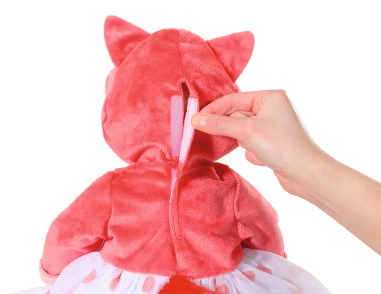 Baby Annabell tanzt in diesem tollen Outfit mit Tutu durchs Kinderzimmer. Geführt von Mamas Hand sehen ihre Ballerina-Sprünge fast so geschmeidig aus, wie bei einem Eichhörnchen. Und das pinke Oberteil hat tatsächlich Ähnlichkeit mit dem putzigen Waldbewohner: Die plüschige Kapuze ist mit spitzen Öhrchen versehen und die Bündchen an den Händen sind aus kuscheligem Fellstoff. Vorne schaut ein aufgedrucktes Eichhörnchen aus seinem Versteck hervor. Der weiße Rock ist außerdem mit rosa Pünktchen verstehen. Diese Puppenbekleidung ist für die Annabell-Puppen mit einer Größe von 43 cm geeignet.