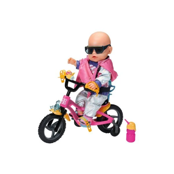 BABY born Fahrrad mit Gurtsystem, Hupe und Blinklicht inkl. Flasche