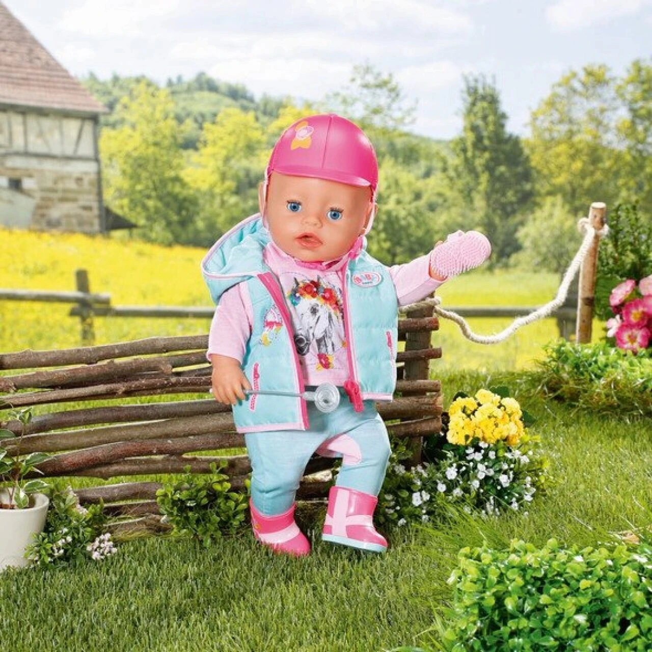 BABY born Deluxe Reitoutfit 43cm aus Weste, Shirt, Hose und Stiefeln. Inkl. Helm, Gerte und Striegel.