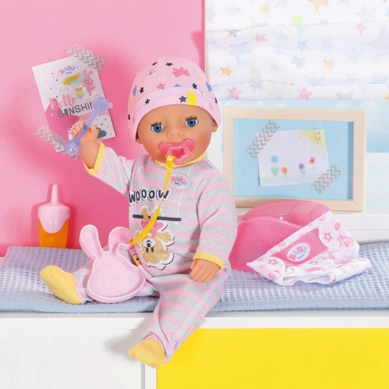 BABY born Little Girl 36cm mit Strampler und Mütze. Inkl. 1 Töpfchen, 1 Stoffwindel, 1 Flasche, 1 Teller mit Löffel, 1 Schnuller und 1 Geburtspass.