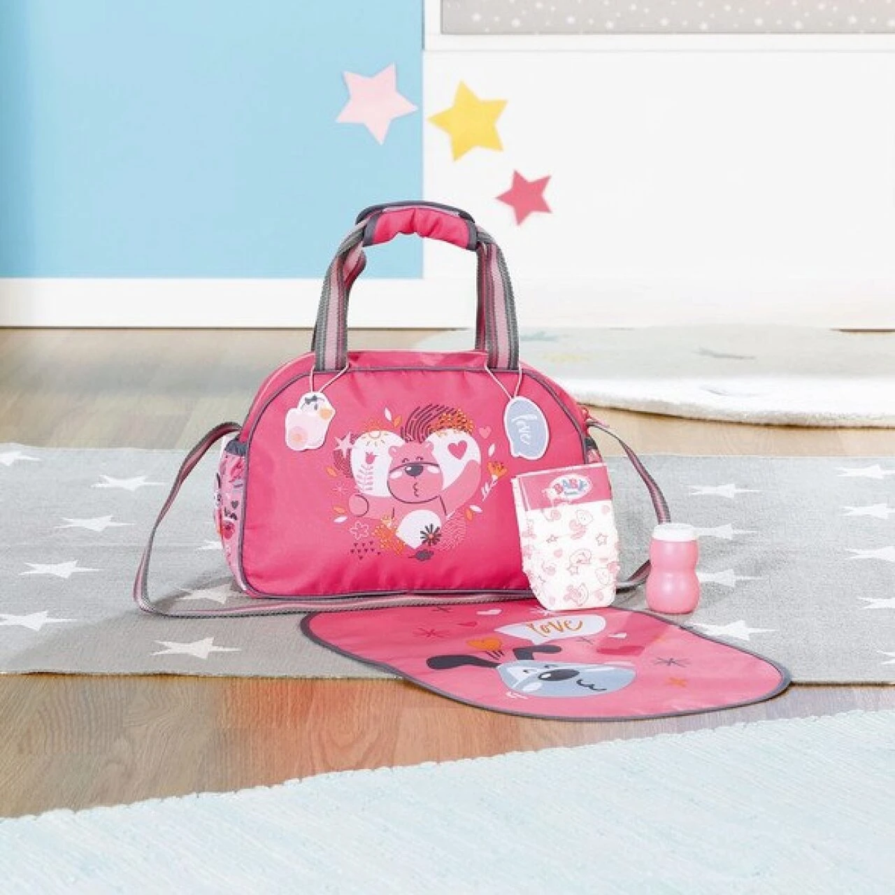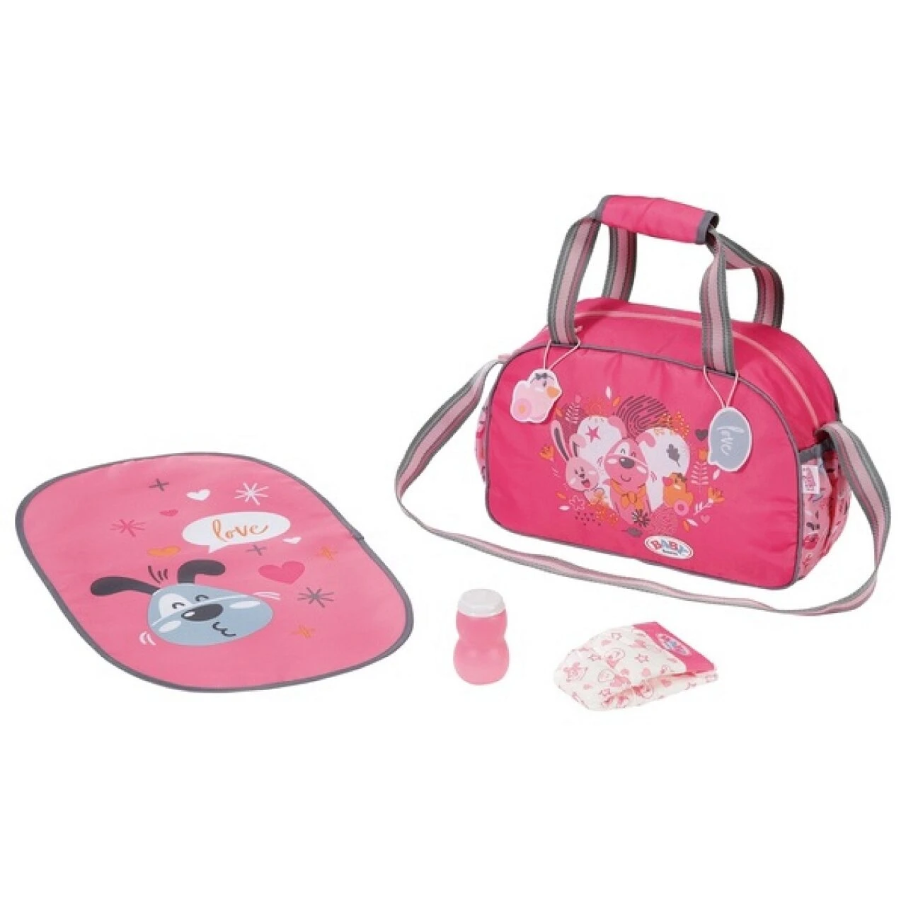 BABY born Wickeltasche mit Wickelunterlage, Windel und Puderdose.