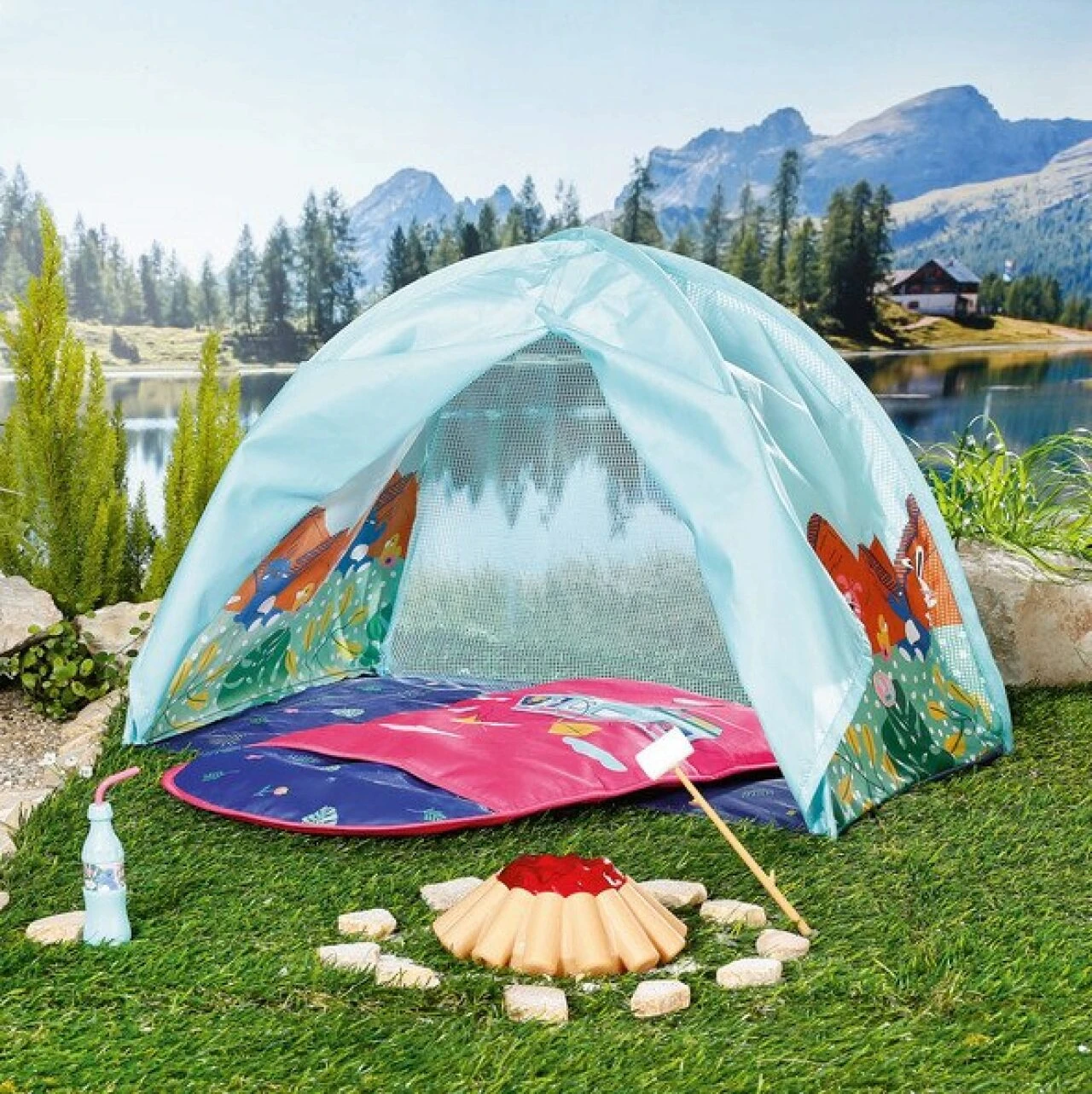 BABY born Weekend Camping Set aus Zelt, Schlafsack, Lagerfeuer, Marshmallow-Stick und Limoflasche.