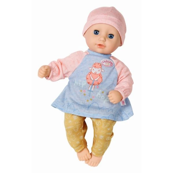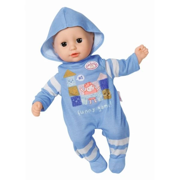 Niedliches Baby Annabell Babyoutfit in zwei unterschiedlichen Designs – einmal für Mädchen / einmal für Jungs – im 2-in-1 Stil. Inklusive Kleiderbügel.