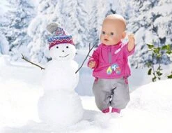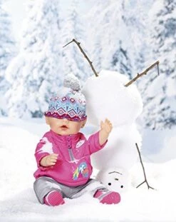 Wer im Winter draußen spielen möchte, muss sich warm anziehen. Für Spaß im Schnee hat BABY born ihr Winter Set mit einer warmen grauen Schneehose und einer coolen pinken Jacke. Die Mütze mit Bommel ist mit einem stylischen Ethno-Motiv bedruckt. Mit den dazu passenden Schuhen friert sie bestimmt nicht beim Schlitten fahren oder bei der Schneeballschlacht. Original Kleidung für die BABY born Markenspielpuppe Erweitert die Spielmöglichkeiten, regt die Fantasie an und fördert kreatives Rollenspiel Kinderleichtes An- und Ausziehen BABY born Play&Fun Deluxe Winter Set aus Latzhose, Jacke, Mütze und Schuhen.