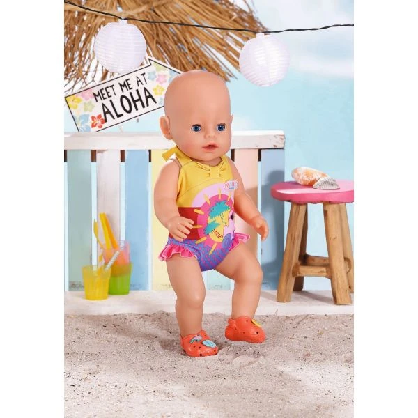 Badespaß beim Babyschwimmen mit BABY borns Badeanzügen in farbenfrohem Holiday Design.